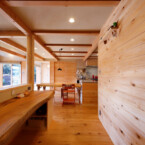 | 仕上材 | 外壁/ジョリパッドゆず肌仕上げ、杉板鎧張り 内壁/中霧島壁、サワラ羽目板、タイル 床/無垢フローリング(杉) 土間/モルタル金こて仕上げ 天井/中霧島壁、サワラ羽目板 ウッドデッキ/クマル 屋根/ガルバリウム鋼板 |