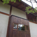 | 仕上材 | 外壁/そとん壁、レッドシーダー羽目板、杉&漆喰チンキング 内壁/エコクイーン、レッドシーダー羽目板、サワラ羽目板、杉&漆喰チンキング 床/無垢フローリング(桜) 天井/無垢羽目板(杉) バルコニー手摺/イエローシーダー ウッドデッキ/グラピア 屋根/ガルバリウム |