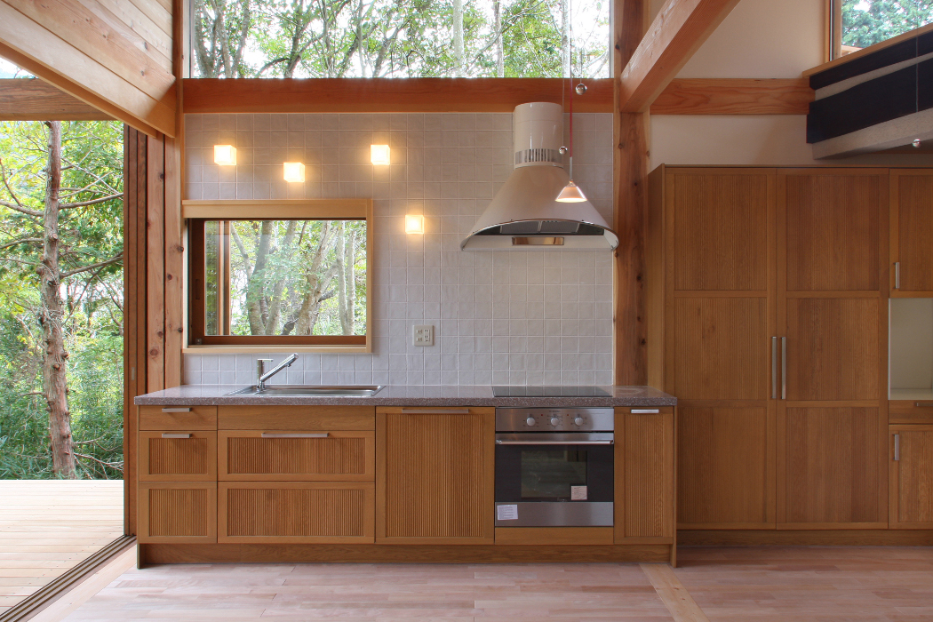 | 設備 | 暖房/電熱線床暖房 給湯/LPガス キッチン/サクラ御影石 キャビネット/IKEA IH&オーブン/エレクトロラックス社 洗面カウンター/ケヤキ一枚板と陶器 |