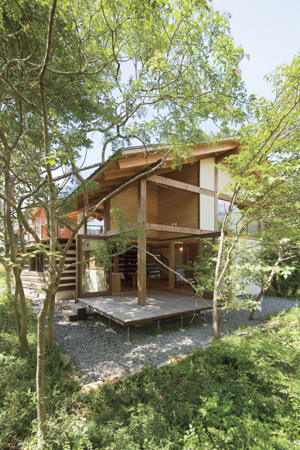 設計のコンセプトは非日常を満喫できる山荘。山の中でゆっくりと流れる時間を実感できる空間にするために様々な工夫が施されている。