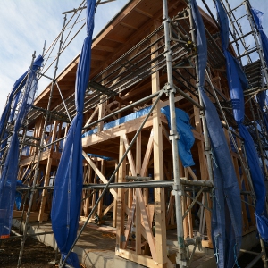 野地板とルーフィングまで出来れば、少々の雨なら大丈夫。